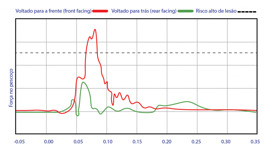 As cadeiras auto voltadas para trás são consideradas as mais seguras para crianças pequenas, pois fornecem suporte adicional para a cabeça, pescoço e coluna vertebral em caso de acidente. De acordo com estudos baseados em acidentes reais, o risco de morte ou lesão em uma colisão aumenta cerca de 5 vezes no caso de crianças que viajam no sentido da marcha em comparação com as crianças que viajam no sentido inverso. Isso é porque acidentes frontais e frontolaterais representam 70% do total de impactos recebidos num veículo, além de serem os mais perigosos. Além disso, as crianças pequenas são muito frágeis, pois ainda não possuem a medula espinal completamente formada e o peso da cabeça representa 25% do total do corpo. Portanto, se o pescoço de uma criança for exposto a grandes forças, isso pode causar lesões graves ou até mesmo a morte.