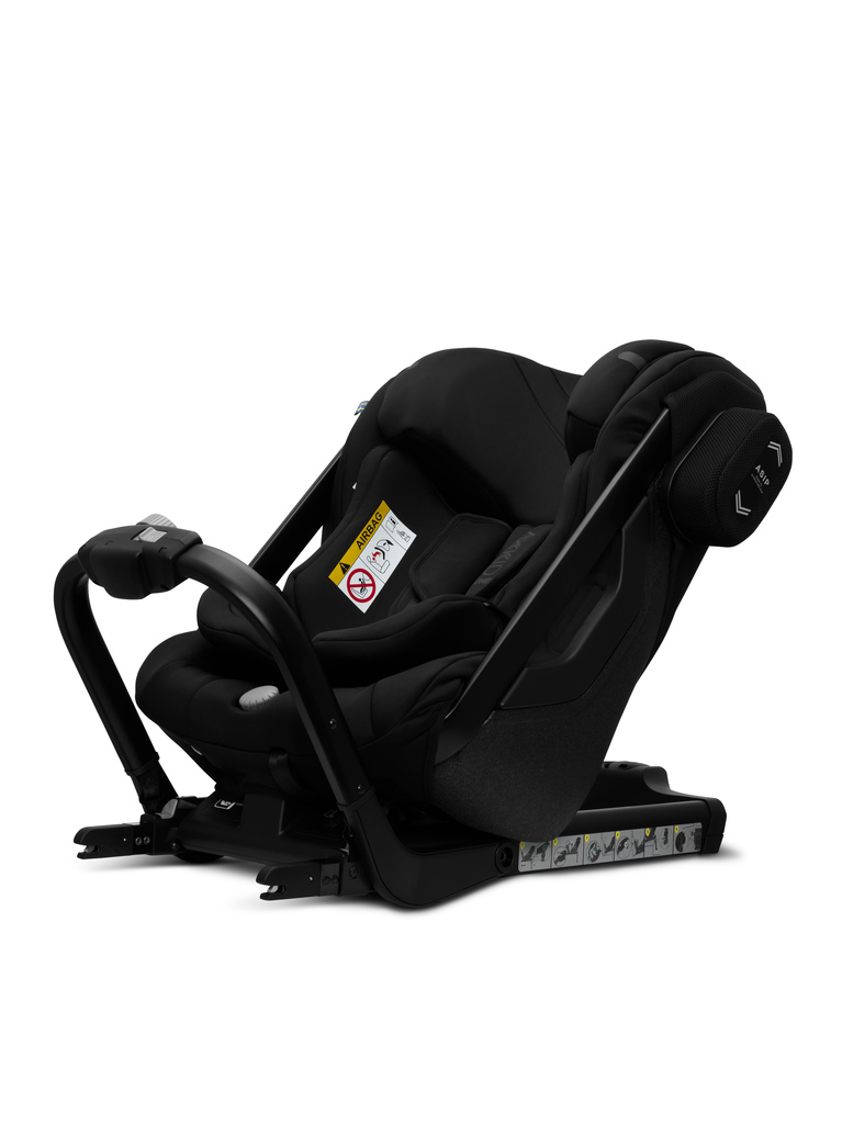 A cadeira auto One da Axkid foi construída com um design novo e inovador que usa alumínio e aço endurecido para formar uma estrutura de segurança leve que atua como um casulo protetor.