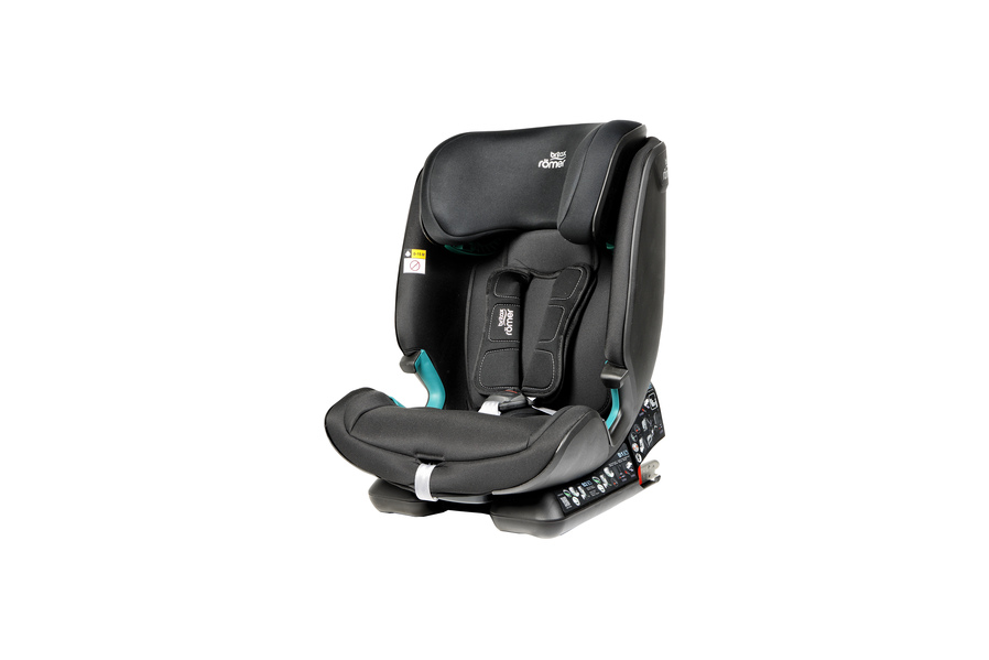 - Para transitar entre grupos basta pulsar um botão para desbloquear o apoio-da-cabeça e poder subir à altura necessária, e guardar o arnês (sem tirar as almofadinhas para o peito) no encosto, atrás do têxtil, para que nada se perca.