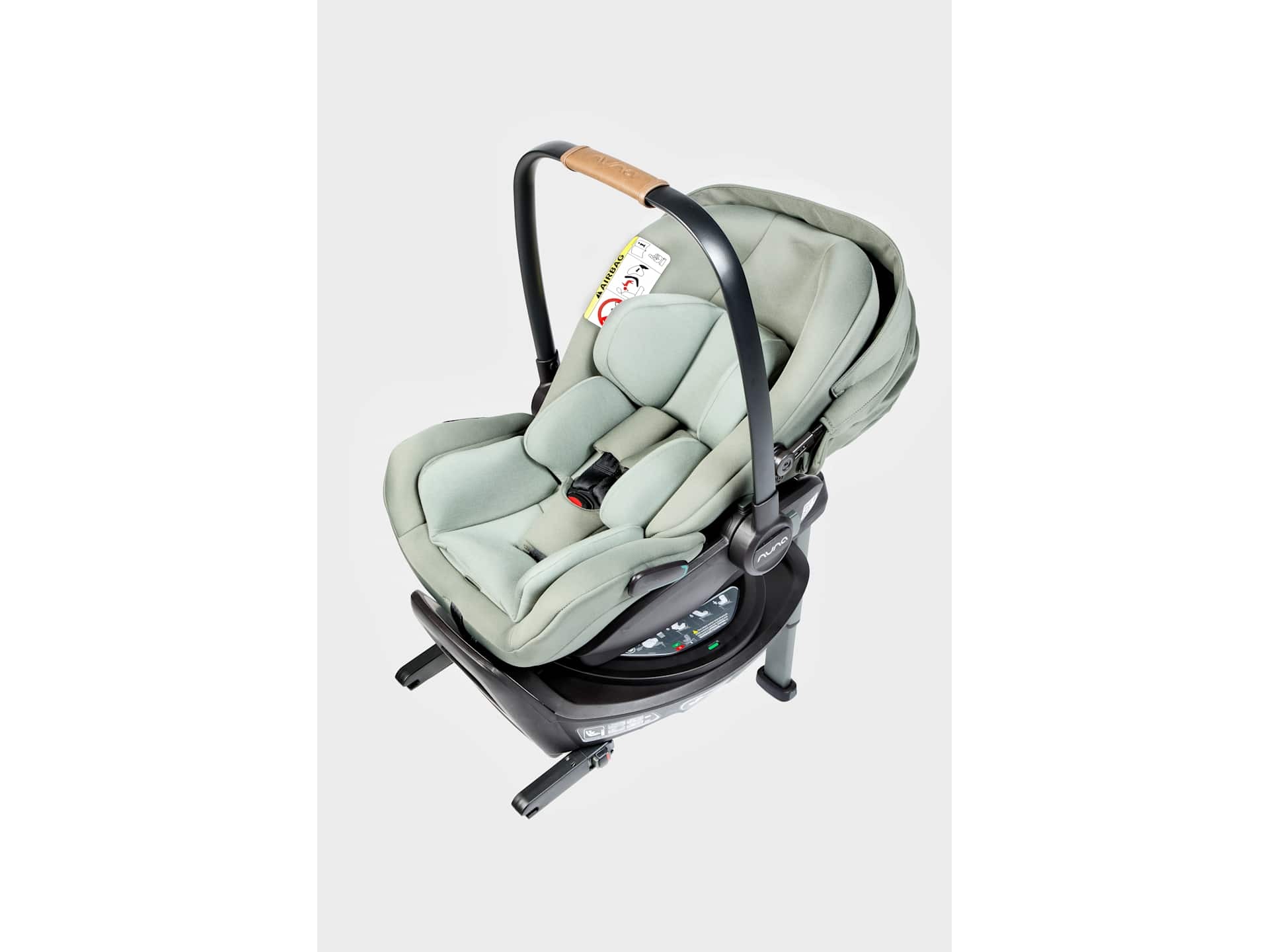 - Cadeira auto Nuna Arra Flex com a base Isofix BaseCurv. Homologada pela norma i-Size para crianças entre 40 cm e 87 cm (até 13 kg).